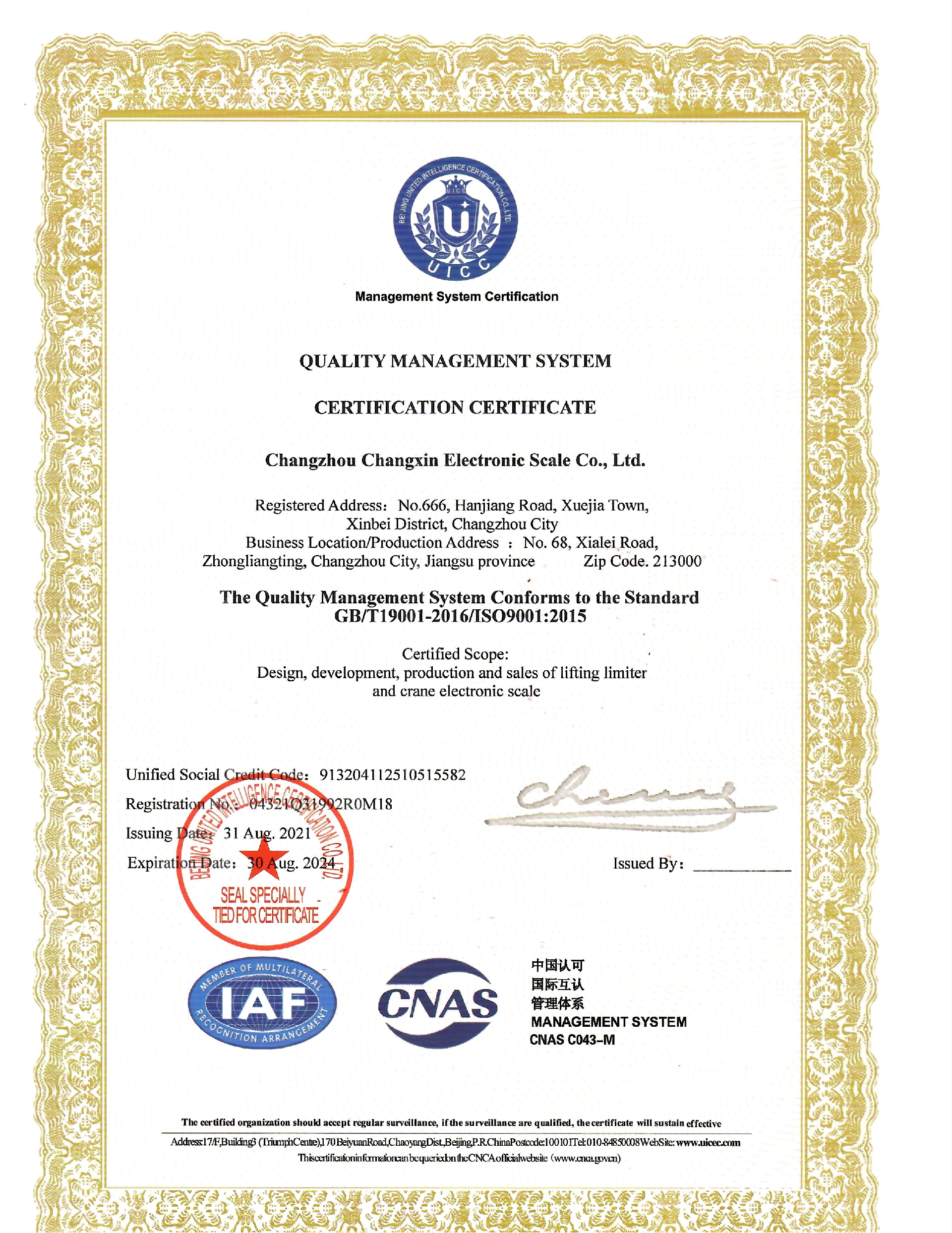 常州市常欣電子衡器有限公司創(chuàng)建于1986年12月,是一家集自主設計開發(fā)、生產(chǎn)制造、銷售和服務于一體的機電類民營股份制企業(yè)。于2018年7月,又成立了常州常欣起重物聯(lián)科技有限公司,并獲得國家級高新技術企業(yè)稱號,目前我們是兩塊牌子一套班子,在同一個廠區(qū)內(nèi)生產(chǎn)辦公。并于2022年1月25日整體搬遷至常州市新北區(qū)漢江路666號新址。